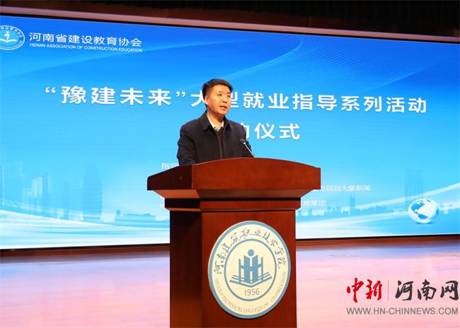 在啟動儀式上,省教育廳學生處四級調(diào)研員錢鵬俊作講話。他指出,此次活動是貫徹落實省委、省政府關于就業(yè)、創(chuàng)業(yè)決策部署的具體行動,是推動建筑行業(yè)人才培養(yǎng)的關鍵舉措。他強調(diào),就業(yè)是民生之本,河南建院作為全省唯一一所公辦建筑類高等職業(yè)學校,堅持以“雙高”工程建設為抓手,持續(xù)深化“三教”改革,緊密結(jié)合市場需求,拓寬就業(yè)渠道,優(yōu)化專業(yè)設置,加強實踐教學,進一步提高大學生綜合素質(zhì)和技能。希望學校以辦好人民滿意的教育為目標,始終把就業(yè)工作當作學校生存與發(fā)展的生命線,在幫助學生樹立正確的職業(yè)規(guī)劃意識,明確專業(yè)學習方向,掌握實用就業(yè)技能,培養(yǎng)學生綜合素質(zhì)和創(chuàng)造能力的同時,積極搭建技術(shù)協(xié)同創(chuàng)新平臺,努力為畢業(yè)生求職就業(yè)保駕護航。鼓勵同學們在強國建設的征程中磨礪成長,展現(xiàn)青年學子的風采與擔當。