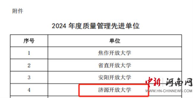 濟源開放大學(xué)喜獲河南開放大學(xué)2024年度質(zhì)量管理先進單位