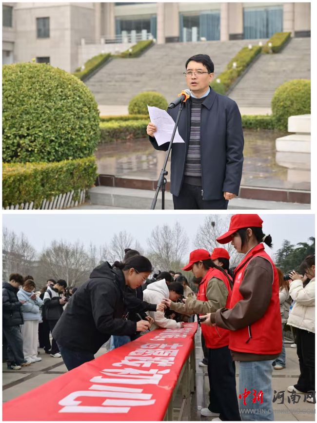 舉行2025年雷鋒月活動啟動儀式。3月5日,,在圖文信息中心前廣場舉行以“志愿微光成炬 青春‘鋒’芒萬丈”為主題的2025年雷鋒月活動啟動儀式。校黨委副書記、工會主席李鵬濤以“以雷鋒精神鑄魂,以勞動精神筑夢”為主題,深刻的闡述了雷鋒精神的內涵、意義和價值。并呼吁同學們將雷鋒精神和勞動精神結合,書寫屬于新時代青年的雷鋒故事;顒又校瑢W生志愿者們分組對校園內的公共區(qū)域進行了全面清理。他們手持清潔工具,細致清掃路面垃圾、撿拾綠化帶雜物,對衛(wèi)生死角進行了重點整治。盡管任務繁重,志愿者們始終秉持“不怕臟、不怕累”的奉獻精神,展現了新時代青年的責任擔當。