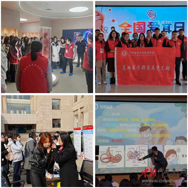 開展全國愛耳日暨學雷鋒志愿活動。3月6日,基礎醫(yī)學部直屬黨支部聯(lián)合河南省第二人民醫(yī)院耳鼻喉科,以“健康聆聽,無礙溝通”為主題開展科普義診活動。通過義診篩查、科普講座、沉浸式體驗、參觀人體生命科學館等形式,500余名師生普及了聽力健康知識。郭丹教授系統(tǒng)剖析噪音、藥物等多重致聾因素,強調“三級預防”理念;邵玉普副教授通過講解耳解剖結構,警示游泳嗆水、不當采耳等生活隱患;省二院王帥醫(yī)生結合臨床案例,解析耳聾早期信號及“黃金72小時”救治策略,并推廣“60-60-60”護耳法則;顒油ㄟ^“科普精準化、體驗沉浸化、服務人性化”的創(chuàng)新模式,開展了一場有溫度、有深度的健康活動。有效增強了師生聽力健康意識,營造了關愛聽障群體的校園氛圍。