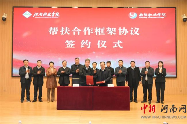 中新河南網(wǎng)3月17日電 3月15日上午,南陽職業(yè)學(xué)院圖書館西報告廳內(nèi)氣氛熱烈,河南科技學(xué)院與南陽職業(yè)學(xué)院對口幫扶合作框架協(xié)議簽約暨南水北調(diào)中線工程水源地鄉(xiāng)村振興學(xué)院、協(xié)同創(chuàng)新中心揭牌儀式在此隆重舉行。河南科技學(xué)院校長闞云超、副校長樂玉忠及相關(guān)單位負(fù)責(zé)人,西峽縣人民政府副縣長崔淅州,南陽職業(yè)學(xué)院全體在校領(lǐng)導(dǎo)出席儀式。此次儀式由南陽職業(yè)學(xué)院黨委副書記、工會主席郭書賢主持,該校全體中層干部共同見證這一重要時刻。