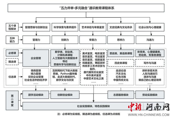 圍繞管理力、創(chuàng)新力、審美力、思辨力、溝通力這五大核心能力,精心設(shè)置系列課程與實踐活動,打破了傳統(tǒng)專業(yè)教育與通識教育之間的界限,強調(diào)“多元融合”,將人文社科、自然科學、藝術(shù)修養(yǎng)、商業(yè)管理以及創(chuàng)新創(chuàng)業(yè)等多個領(lǐng)域知識有機融合,形成跨學科的課程體系,拓寬學生的知識視野,激發(fā)創(chuàng)新思維,培養(yǎng)學生的綜合素質(zhì)。