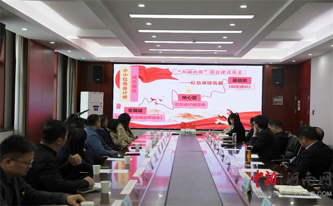 會(huì)計(jì)學(xué)院副教授魏亞芳匯報(bào)了“紅色會(huì)計(jì)”黨建品牌建設(shè)成果