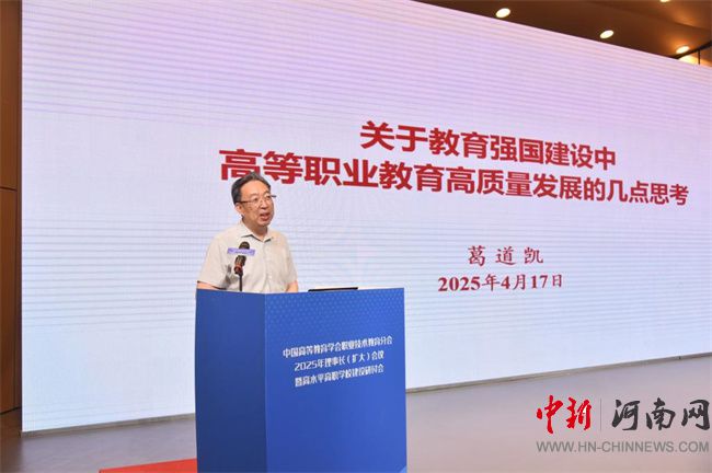 葛道凱作了題為《關(guān)于教育強(qiáng)國(guó)建設(shè)中高等職業(yè)教育高質(zhì)量發(fā)展的幾點(diǎn)思考》的主旨報(bào)告。他圍繞黨的二十屆三中全會(huì)關(guān)于教育工作的重要部署、落實(shí)全國(guó)教育大會(huì)精神和《教育強(qiáng)國(guó)建設(shè)規(guī)劃綱要(2024—2035 年)》要求,用詳實(shí)的數(shù)據(jù)和生動(dòng)的案例,分析了教育強(qiáng)國(guó)建設(shè)中高等職業(yè)教育高質(zhì)量發(fā)展的思路。他表示,面對(duì)新時(shí)代教育發(fā)展的新趨勢(shì),職業(yè)教育必須變革,要推動(dòng)職業(yè)教育系統(tǒng)發(fā)展、統(tǒng)籌發(fā)展、融合發(fā)展,核心是處理好理論和實(shí)踐的關(guān)系、教學(xué)與科研的關(guān)系、投入和產(chǎn)出的關(guān)系、知識(shí)和精神的關(guān)系。