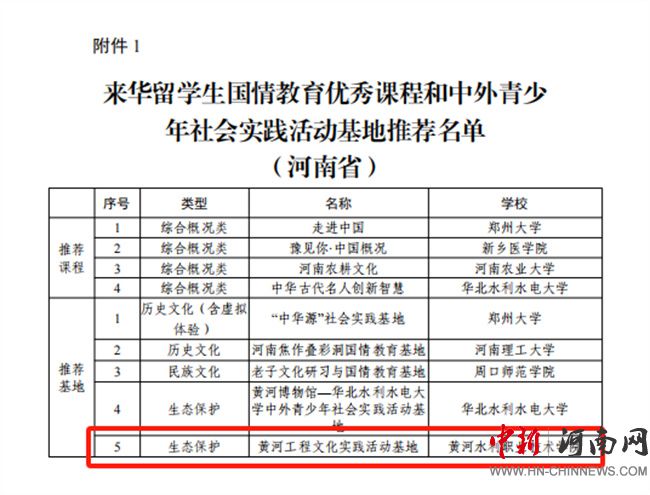 中新河南網(wǎng)5月7日電 近日,中國教育國際交流協(xié)會公布首批“來華留學(xué)生國情教育優(yōu)秀課程和中外青少年社會實踐活動基地”推薦名單,黃河水利職業(yè)技術(shù)大學(xué)申報的“黃河工程文化實踐活動基地”(生態(tài)保護(hù)類)成果入選。此次評選中,河南省共入選課程4門、基地5個,黃河水利職業(yè)技術(shù)大學(xué)是全省職業(yè)教育領(lǐng)域唯一入選單位。