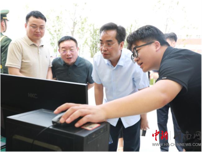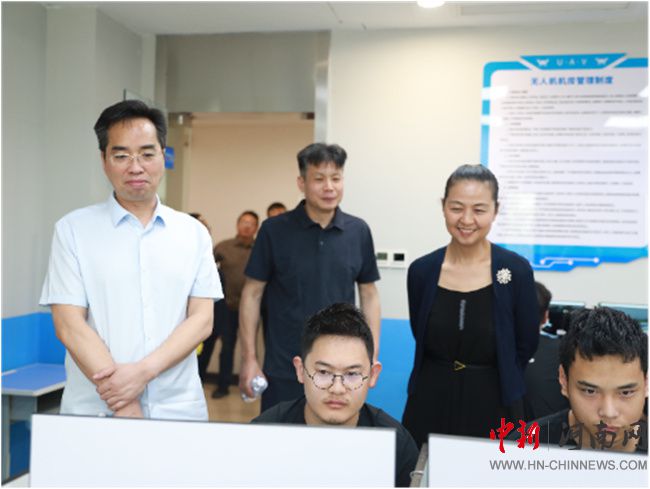 校長李曉東、副校長耿聰慧一行參觀了計算機(jī)組裝與維修、無人機(jī)航拍與建模等專業(yè)的展示