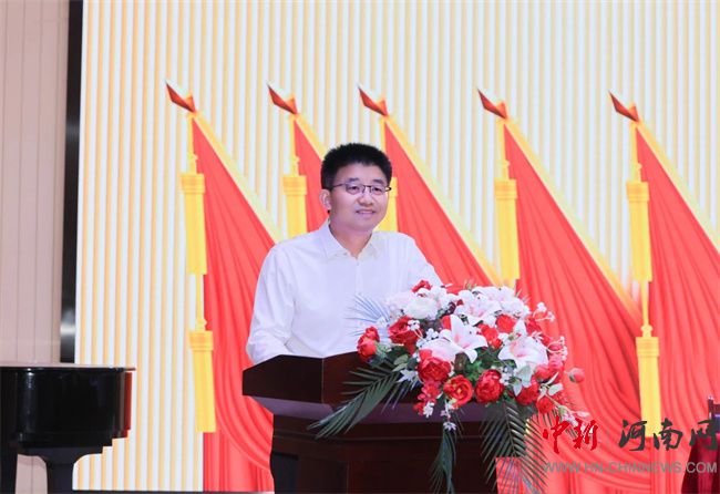 兄弟院校團(tuán)委、學(xué)生會(huì)向大會(huì)致賀詞。工會(huì)主席、校長助理高紅艷代表群團(tuán)組織致賀詞。共青團(tuán)新鄭市委副書記蘇子洋向大會(huì)的召開表示熱烈祝賀。他充分肯定了學(xué)校共青團(tuán)工作取得的顯著成績,并提出學(xué)校近年來組織青年學(xué)子積極投身黃帝論壇、拜祖大典等重要活動(dòng)的志愿服務(wù)工作,為屬地活動(dòng)成功的舉辦貢獻(xiàn)青春力量。