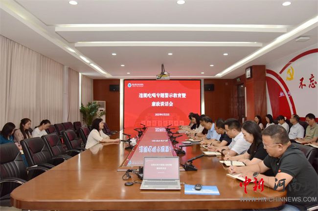 中新河南網(wǎng)6月26日電(張虹艷) 6月23日上午,河南職業(yè)技術(shù)學(xué)院黨委副書記、校長(zhǎng)夏新顏在勤業(yè)樓332會(huì)議室,主持召開(kāi)分管聯(lián)系單位違規(guī)吃喝專題警示教育暨廉政談話會(huì),推動(dòng)中央八項(xiàng)規(guī)定精神學(xué)習(xí)教育落地見(jiàn)效、持續(xù)深化。審計(jì)處、汽車與交通學(xué)院、文化旅游學(xué)院等聯(lián)系單位的黨政負(fù)責(zé)人、科級(jí)以上干部及教研室主任參會(huì)。