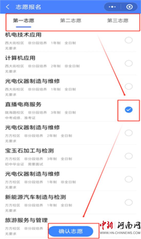 選擇意向?qū)W校、專業(yè),填報(bào)志愿,首次報(bào)名需要進(jìn)行人臉識(shí)別;