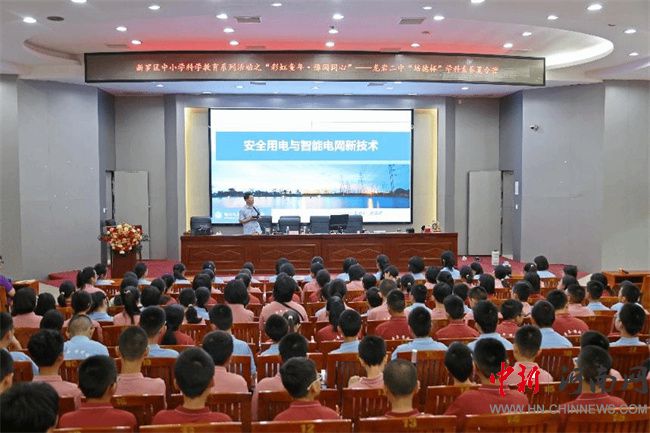 鄭州電力高等?茖W校電力科普團師生走進福建龍巖二中電力科普課堂,帶來一場別開生面的講座。從風機模型到‘電流按摩’;從亮晶晶的銅、鐵、鋁片到五顏六色的電阻和電池,無不激發(fā)起營員們對電力知識的好奇。而當大屏里出現(xiàn)綿延的光伏電站像藍色海洋般鋪滿山坡,巨大的風力發(fā)電機葉片在云端轉(zhuǎn)動,橫跨海底的電纜像隧道連接起兩岸時,營員們充滿了對“大國重器”的贊嘆。此次科普不僅讓大家讀懂了電的“語言”,更在心里埋下了一顆好奇的種子。