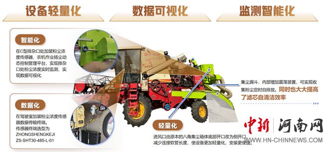 智能化:在C型排雜口處加裝粉塵濃度傳感器、農(nóng)機(jī)作業(yè)揚塵動態(tài)控制管理平臺,實現(xiàn)排雜口處粉塵濃度實時監(jiān)測,實現(xiàn)數(shù)據(jù)可視化。