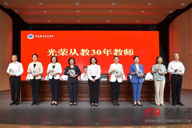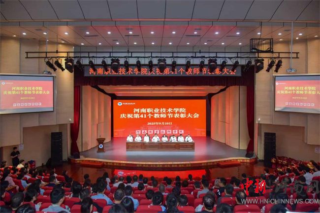 中新河南網(wǎng)9月11日電(張舒暢) 9月10日上午,河南職業(yè)技術(shù)學(xué)院在音樂廳隆重召開慶祝第41個教師節(jié)表彰大會,表彰為學(xué)校發(fā)展作出貢獻(xiàn)的先進(jìn)集體和個人,并向全體教職員工致以節(jié)日問候和崇高敬意。校領(lǐng)導(dǎo)厲勵、夏新顏、肖瓏、李玉峰、盛興文、任楓軒、魯冬出席會議。學(xué)校副科級及以上干部、受表彰教師代表及部分師生代表參加會議。校黨委委員、副校長朱永寬主持會議。