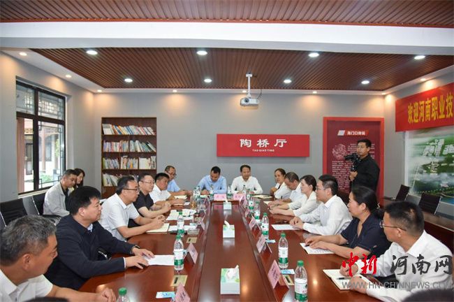 王奇山對學校在陶橋村鄉(xiāng)村振興中給予的支持表示感謝,充分肯定了駐村工作隊的辛勤付出與實際成效。他系統(tǒng)介紹了區(qū)、鄉(xiāng)、村三級發(fā)展現狀,并希望源匯區(qū)與河南職業(yè)技術學院在電子商務、技能培訓、技術轉化與貿易等方面進一步拓展合作,共同推動地方經濟社會高質量發(fā)展。王仕梁對駐村工作隊半年來的工作成績予以高度評價,并感謝學校一直以來的全面支持。陶橋村黨支部書記陶軍華介紹了本村基本情況和產業(yè)發(fā)展現狀,駐村第一書記張毅飛詳細匯報了前期工作成效、當前困難與下一步計劃。