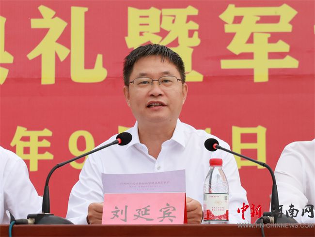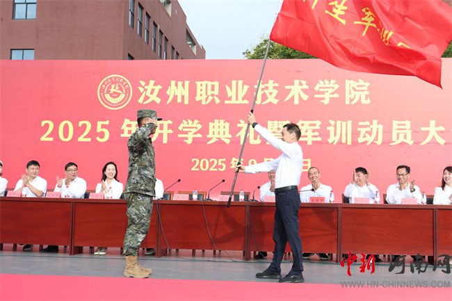 汝州職業(yè)技術(shù)學(xué)院黨委書記翟會(huì)杰為軍訓(xùn)團(tuán)授旗