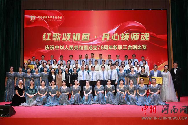 中新河南網(wǎng)9月28日電(劉燕 蔡雨) 金秋送爽,丹桂飄香。為慶祝中華人民共和國成立76周年,激發(fā)廣大教職工愛國情懷與責(zé)任擔(dān)當(dāng),9月25日,河南醫(yī)學(xué)高等?茖W(xué)校“紅歌頌祖國 丹心鑄師魂”教職工合唱比賽在公共藝術(shù)中心隆重舉行。