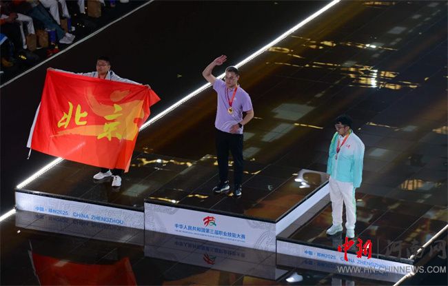 2025年9月23日晚,鄭州,中華人民共和國第三屆職業(yè)技能大賽閉幕式現(xiàn)場。當(dāng)“智能制造工程技術(shù)(國賽精選)賽項金牌——河南代表團,張國佗”的宣布聲響起,這位年輕的小伙子與身旁的指導(dǎo)老師賈艷瑞緊緊相擁,淚水奪眶而出。