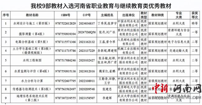 黃河水利職業(yè)技術(shù)大學(xué)9部教材獲河南省職業(yè)教育優(yōu)秀教材