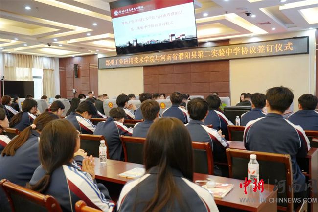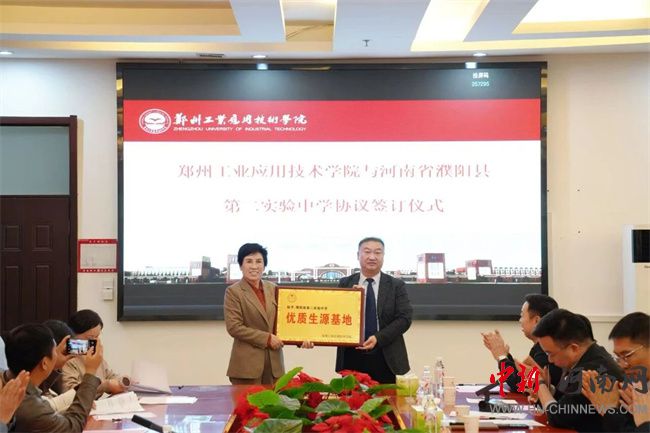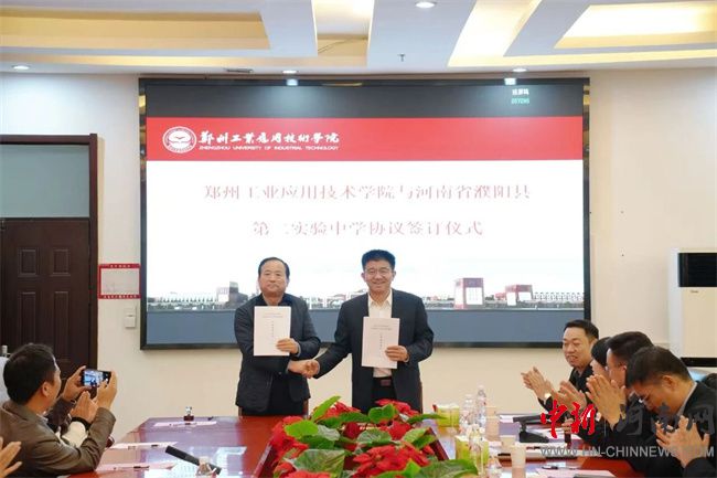 中新河南網(wǎng)10月17日電 10月16日,鄭州工業(yè)應(yīng)用技術(shù)學(xué)院與河南省濮陽縣第二實驗中學(xué)生源基地協(xié)議簽訂儀式在行政管理中心二樓會議室舉行。此次簽約,不僅是鄭工學(xué)院發(fā)展史上開啟教育新篇章的重要征程,更是通過與基礎(chǔ)教育領(lǐng)域優(yōu)質(zhì)學(xué)校的深度融合,將共建生源基地轉(zhuǎn)化為推動校地教育協(xié)同的具體實踐。濮陽縣第二實驗中學(xué)教育集團董事長蔡玉坤,校長張克來、副校長段盈武等班子成員及師生代表;中原華信控股集團總裁、鄭州工業(yè)應(yīng)用技術(shù)學(xué)院理事長谷建光,校長閆兵攜班子成員、有關(guān)部門負責人參加簽訂儀式。簽訂儀式由鄭州工業(yè)應(yīng)用技術(shù)學(xué)院副校長賈圣強主持。