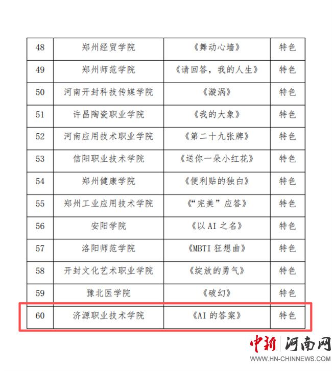 中新河南網(wǎng)10月21日電(張亞麗) 近日,省委教育工委、省教育廳公布了2025年全省高校心理情景劇作品征集活動遴選結(jié)果。濟源職業(yè)技術(shù)學(xué)院選送作品《AI的答案》被評為特色作品。