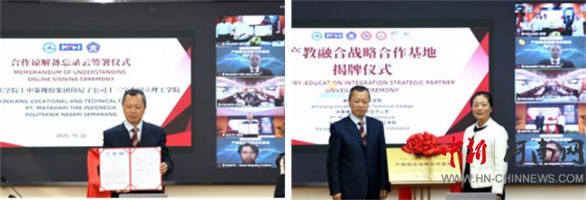 中新河南網(wǎng)10月23日電 10月22日,新鄉(xiāng)職業(yè)技術(shù)學(xué)院與中策橡膠集團(tuán)印尼子公司、印度尼西亞三寶壟國(guó)立理工學(xué)院以線上線下結(jié)合方式,隆重舉行“產(chǎn)教融合戰(zhàn)略合作基地”揭牌儀式。此次揭牌標(biāo)志著三方在推動(dòng)“產(chǎn)教融合、校企合作、職教出海”方面邁出實(shí)質(zhì)性步伐,是學(xué)校服務(wù)國(guó)家“一帶一路”倡議、助力中資企業(yè)海外發(fā)展的又一重要舉措。