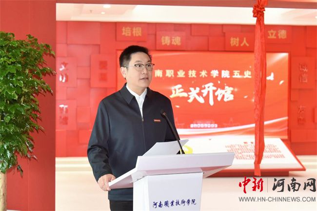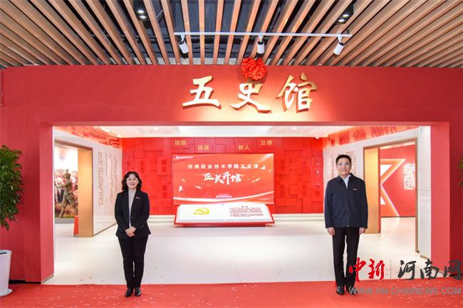 中新河南網(wǎng)10月30日電(胡海涵) 10月29日上午,河南職業(yè)技術(shù)學(xué)院在圖書(shū)館隆重舉行“五史館”開(kāi)館儀式。校黨委書(shū)記厲勵(lì),校黨委副書(shū)記、校長(zhǎng)夏新顏共同為“五史館”揭牌。在鄭校領(lǐng)導(dǎo)、各單位黨政負(fù)責(zé)人、師生代表及學(xué)校馬院共建結(jié)對(duì)院校思政課教師代表一同見(jiàn)證開(kāi)館。校黨委副書(shū)記、工會(huì)主席田華主持開(kāi)館儀式。