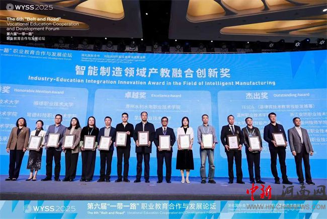 本次論壇匯聚了來自全球20多個國家和地區(qū)的600余位教育界專家、院校及企業(yè)代表,共同探討人工智能背景下職業(yè)教育發(fā)展的新路徑。信陽科技職業(yè)學(xué)院董事長高云、校長趙輝、副校長謝語蔚等校領(lǐng)導(dǎo)應(yīng)邀參會。信陽科技職業(yè)學(xué)院憑借在智能制造領(lǐng)域的深厚積淀與產(chǎn)教融合的豐富成果,榮獲“智能制造領(lǐng)域產(chǎn)教融合創(chuàng)新獎卓越獎”。該獎項(xiàng)是對該校精準(zhǔn)對接產(chǎn)業(yè)需求、創(chuàng)新人才培養(yǎng)模式成效的充分肯定,也為該校深化產(chǎn)教融合探索、持續(xù)推進(jìn)國際職業(yè)教育合作注入了強(qiáng)勁動力。