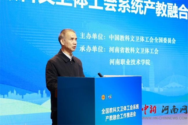 中新河南網(wǎng)11月13日電(陳欣欣) 11月11日至12日,全國教科文衛(wèi)體工會系統(tǒng)產(chǎn)教融合工作推進會在河南職業(yè)技術(shù)學(xué)院召開,深入學(xué)習(xí)貫徹黨的二十屆四中全會精神,總結(jié)交流產(chǎn)教融合工作經(jīng)驗,凝聚產(chǎn)業(yè)深化產(chǎn)改合力。中國教科文衛(wèi)體工會主席、分黨組書記高潔,省總工會黨組書記、常務(wù)副主席李拴成,省總工會副主席、黨組成員劉雪峰,全國總工會勞動和經(jīng)濟工作部技能培訓(xùn)與技術(shù)創(chuàng)新處副處長、二級調(diào)研員劉超,省教科文衛(wèi)體工會主席張學(xué)勇,校黨委書記厲勵,校黨委副書記、校長夏新顏等領(lǐng)導(dǎo)出席會議。會議由中國教科文衛(wèi)體工會分黨組成員李杰主持。