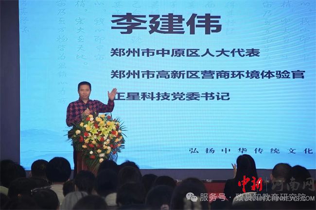 懷著對祖國的敬畏之心和對圣賢的誠敬之心,近千人的會場鴉雀無聲,洗耳恭聽鄭州中原區(qū)人大代表、鄭州市高新區(qū)營商環(huán)境體驗官、正星科技黨委書記李建偉老師的震撼致辭。