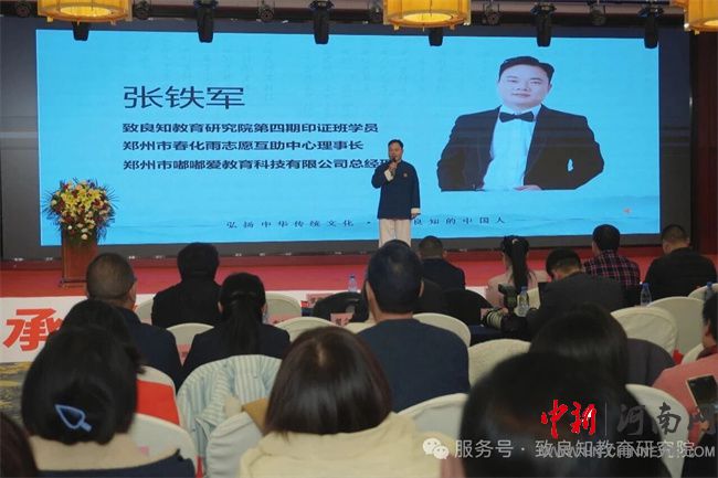 上午的最后一個分享,來自鄭州市春化雨志愿互助中心的理事長張鐵軍老師,他分享的題目是《學習陽明心學 助力天下無孤》。鐵軍理事長因一次偶然的契機接觸到中華優(yōu)秀傳統(tǒng)文化,通過一次線下學習,他認定了一生追隨的博仁老師。