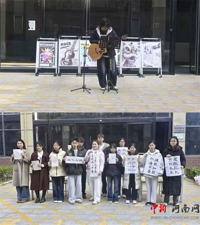 中新河南網(wǎng)12月18日電 12月16日中午,由汝州職業(yè)技術(shù)學(xué)院校團(tuán)委主辦的“社團(tuán)風(fēng)采集中展演”在學(xué)生餐廳前廣場(chǎng)精彩上演,醒獅社、合唱團(tuán)、舞蹈社、吉他社、書(shū)法社五大精品社團(tuán)聯(lián)袂登臺(tái),為師生帶來(lái)一場(chǎng)充滿青春氣息文化盛宴。校黨委書(shū)記翟會(huì)杰、校長(zhǎng)劉延賓等領(lǐng)導(dǎo)到場(chǎng)觀看,對(duì)本次活動(dòng)給予高度評(píng)價(jià)。