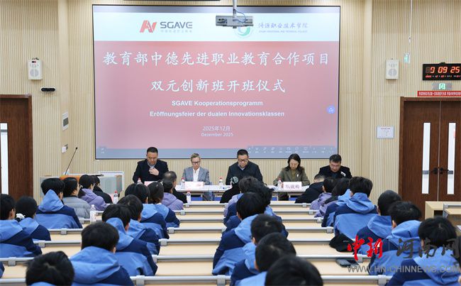 耿俊梅介紹了學(xué)校的辦學(xué)積淀、產(chǎn)教融合成果及國家級辦學(xué)榮譽,強調(diào)SGAVE項目是引入德國雙元制理念的重要平臺,希望學(xué)生成長為國際化智造人才。