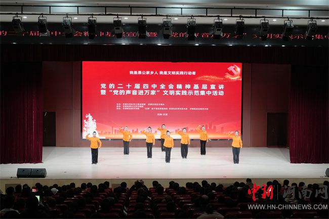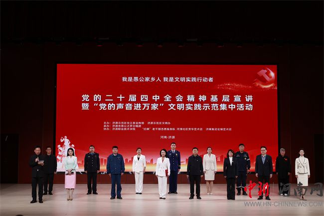 活動以“我是愚公家鄉(xiāng)人 我是文明實踐行動者”為主題,節(jié)目緊密圍繞黨的二十屆四中全會精神,生動展現(xiàn)“十五五”發(fā)展藍圖。開場歌曲《迎風(fēng)飄揚的旗》,節(jié)奏歡快,振奮人心,迅速點燃全場熱情;小品《回家吃飯》以輕松幽默的方式,詮釋了好的家風(fēng)是家庭和諧幸福的基石,更是培育淳樸民風(fēng)的基礎(chǔ);情景劇節(jié)目圍繞黨的二十屆四中全會精神,把理論知識轉(zhuǎn)化為通俗易懂的“家常話”,讓大家在歡聲笑語中加深理解、入腦入心;微課堂宣講環(huán)節(jié),濟源職業(yè)技術(shù)學(xué)院馬克思主義學(xué)院院長李滟老師帶領(lǐng)全市15名各行各業(yè)的“新時代宣講師”,潛移默化地把全會精神傳遞給在場觀眾,讓大家更直觀地體會到五年規(guī)劃的價值與意義。新的時代,要有新的使命和新的作為,宣誓環(huán)節(jié)現(xiàn)場全體文明實踐志愿者起立宣誓志愿者誓詞,承諾踐行奉獻、友愛、互助、進步的志愿精神,傳遞真善美,傳播正能量;顒釉诤铣对邳h的旗幟下前進》中活動圓滿結(jié)束。