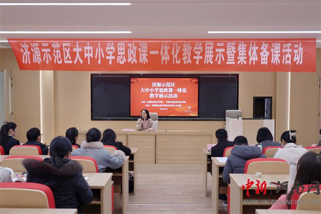 據(jù)了解,濟(jì)源示范區(qū)大中小學(xué)思政課一體化虛擬教研室成立以后,開展了一系列活動(dòng),探索濟(jì)源全域思政課縱向貫通的體制機(jī)制、方式方法,取得了一些成效。2025年12月《教育時(shí)報(bào)》以“協(xié)同·融合·創(chuàng)新——奏響一體化育人樂章”專版報(bào)道了思政課一體化育人的特色,先后在2024年全省“大練兵 大比武 大展示”活動(dòng)和優(yōu)秀課例評(píng)選中分別獲得一等獎(jiǎng)。此次活動(dòng)的舉辦,為濟(jì)源示范區(qū)大中小學(xué)思政課教師跨學(xué)段交流的橋梁,促進(jìn)了優(yōu)質(zhì)教學(xué)資源共享與教學(xué)經(jīng)驗(yàn)互鑒,進(jìn)一步明晰了思政課一體化建設(shè)的實(shí)踐路徑。與會(huì)教師紛紛表示,將把所學(xué)所悟融入日常教學(xué),持續(xù)深化思政課改革創(chuàng)新,真正實(shí)現(xiàn)從感知、意識(shí)、認(rèn)同到擔(dān)當(dāng)?shù)挠四繕?biāo),為培養(yǎng)擔(dān)當(dāng)民族復(fù)興大任的時(shí)代新人筑牢思想根基。