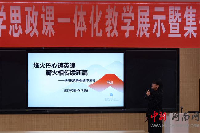 濟(jì)源市玉川路小學(xué)李娟、沁園中學(xué)李思睿、高級(jí)中學(xué)湯藝培、濟(jì)源職業(yè)技術(shù)學(xué)院馬克思主義學(xué)院劉永青四位老師,分別圍繞“弘揚(yáng)抗戰(zhàn)精神 奮力挺膺擔(dān)當(dāng)”主題,立足學(xué)生認(rèn)知規(guī)律與成長(zhǎng)特點(diǎn),從作品的設(shè)計(jì)思路、展示方式及教學(xué)啟示進(jìn)行分學(xué)段交流。生動(dòng)詮釋了大中小學(xué)思政課“各學(xué)段有側(cè)重、全鏈條相貫通”的育人邏輯,為在場(chǎng)教師提供了可借鑒、可推廣的實(shí)踐范例。