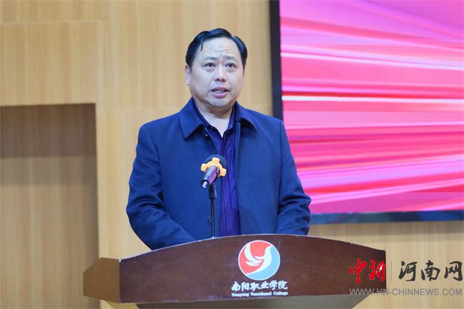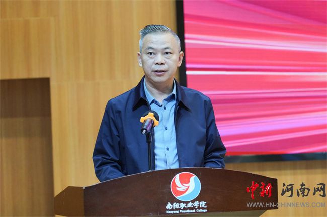 南陽職業(yè)學(xué)院執(zhí)行校長(zhǎng)、紀(jì)委書記董聯(lián)軍致歡迎辭。他對(duì)巡展走進(jìn)西峽、走進(jìn)該校表示熱烈歡迎,認(rèn)為這是對(duì)學(xué)校辦學(xué)特色與育人成果的充分肯定。他介紹了學(xué)校建校十五年來在藝術(shù)設(shè)計(jì)領(lǐng)域的探索與實(shí)踐,特別是在“以賽促教、以賽促學(xué)、以練代訓(xùn)”教學(xué)模式下的積極成效,師生在國家級(jí)、省級(jí)專業(yè)競(jìng)賽中屢獲佳績(jī),并深度服務(wù)西峽及周邊地區(qū)鄉(xiāng)村品牌包裝、文旅文創(chuàng)設(shè)計(jì)等社會(huì)項(xiàng)目,逐步形成了“重實(shí)踐、強(qiáng)技能、能創(chuàng)新”的育人特色。他強(qiáng)調(diào),藝術(shù)設(shè)計(jì)在新時(shí)代承載著文化傳承與創(chuàng)新驅(qū)動(dòng)的重要使命,學(xué)校將以此次巡展為契機(jī),進(jìn)一步深化校企合作、產(chǎn)教融合,為南陽培養(yǎng)更多優(yōu)秀設(shè)計(jì)人才。