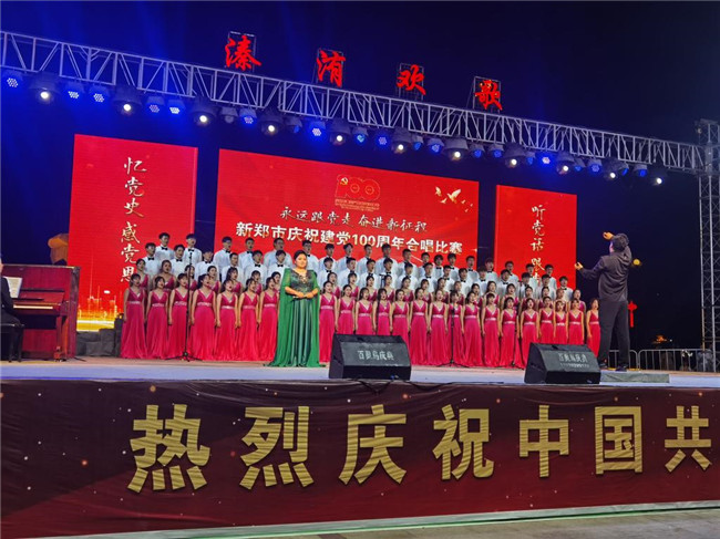 中新河南網6月23日電(魏豪 孫鳳娟) 6月15日晚,新鄭市慶祝建黨100周年合唱比賽“永遠跟黨走 奮進新征程”在炎黃廣場正式拉開序幕。鄭州升達經貿管理學院藝術學院合唱團在劉營光、安冉、艾賽賽、孫鳳娟四位教師帶領下前往新鄭市炎黃廣場參加比賽。
