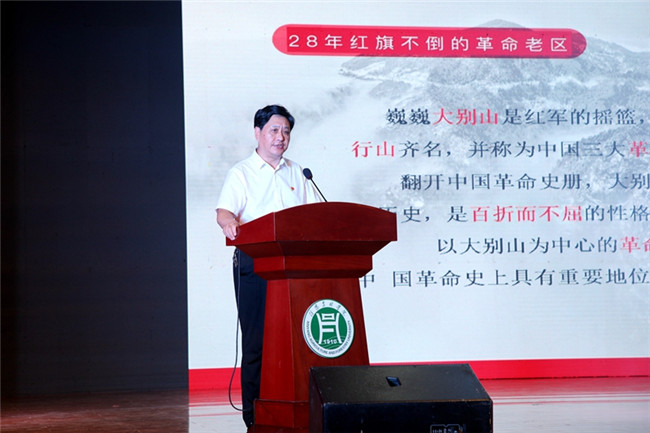 信陽農(nóng)林學(xué)院王慶兵作了總結(jié)講話。他指出,此次活動(dòng)一是意義重大。我校圍繞立德樹人根本任務(wù),圍繞如何培養(yǎng)社會(huì)主義建設(shè)者和接班人光榮使命,發(fā)揮紅色資源優(yōu)勢(shì),廣泛動(dòng)員社會(huì)力量,校地精心合作共同辦好這場(chǎng)思政大課,對(duì)全校師生具有深刻的教育意義,對(duì)思政課教學(xué)改革具有積極推動(dòng)作用,對(duì)于深化黨史學(xué)習(xí)教育具有重大的現(xiàn)實(shí)意義。二是形式新穎。四位講述者講述黨的故事、革命的故事、根據(jù)地的故事、英雄和先烈的故事,并充分與學(xué)生互動(dòng),回答的學(xué)生提問。學(xué)校優(yōu)秀思政課教師進(jìn)行點(diǎn)評(píng),體現(xiàn)了新時(shí)代思政課具有的思想性、理論性、親和力和針對(duì)性,為我們探索思政課教學(xué)改革提供了新的思路和新模式。三是主題鮮明。大別山28年紅旗不倒和革命先烈流血犧牲的英勇事跡,向我們昭示了革命先輩閃耀的信仰之光和信念力量。接受這樣感人的思政課教育,對(duì)于青年學(xué)生牢固樹立對(duì)共產(chǎn)主義的信仰、對(duì)中國(guó)特色社會(huì)主義的信念、對(duì)實(shí)現(xiàn)民族復(fù)興中國(guó)夢(mèng)的信心具有顯著成效。