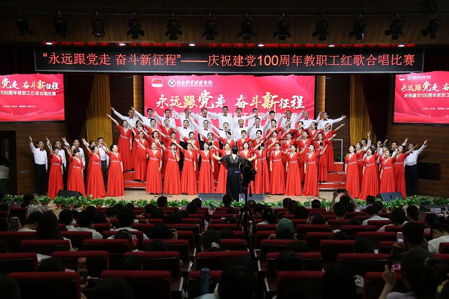 胸懷千秋偉業(yè),恰是百年風華。唱響百年歲月,傳承紅色基因,全體教職工將堅定信念跟黨走、擔當作為新時代、立足崗位做貢獻,以昂揚姿態(tài)投入學校建設(shè)新征程,不斷書寫新的歷史、創(chuàng)造新的輝煌。