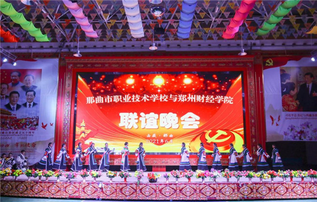 交流期間,那曲職校藝術(shù)團(tuán)還準(zhǔn)備了精彩的聯(lián)誼晚會,藝術(shù)團(tuán)師生載歌載舞,熱情歡迎鄭州財經(jīng)學(xué)院援藏代表團(tuán)。婉轉(zhuǎn)悠揚(yáng)的歌聲,美輪美奐的舞蹈,盡展藏區(qū)同胞的熱情和民族風(fēng)情,為代表團(tuán)成員留下深刻的印象。