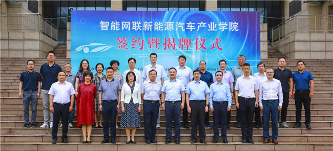 儀式結(jié)束后,參與嘉賓合影留念,并前往上海機(jī)動車檢測認(rèn)證技術(shù)研究中心有限公司河南分公司參觀調(diào)研,簽約單位代表還通過研討會就產(chǎn)業(yè)學(xué)院下一步規(guī)劃展開具體討論、分析。