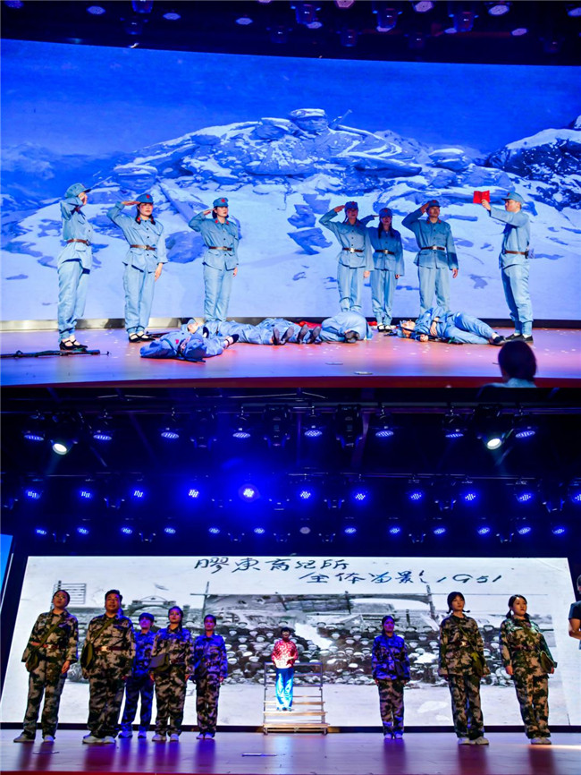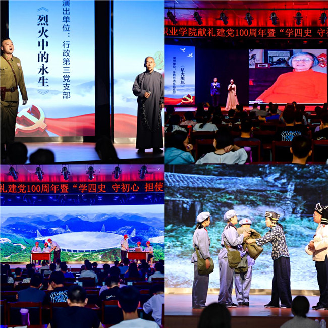 此次大賽是該院黨史學(xué)習(xí)教育系列活動(dòng)之一,是校園思政課堂的延續(xù),它將黨史故事和真情演繹結(jié)合在一起,起到了很好的育人效果!讹L(fēng)雪長(zhǎng)征路》講述了長(zhǎng)征路上被風(fēng)雪凍斃的紅軍戰(zhàn)士的故事,皚皚白雪飄蕩,戰(zhàn)士們僵硬的尸體矗立其中,畫(huà)面震撼人心,讓人動(dòng)容;為保留革命火種,舍棄自己孩子養(yǎng)育革命后代的《乳娘》故事。孩子們聲聲呼喚表達(dá)了對(duì)乳娘發(fā)自心底的愛(ài),場(chǎng)面極具震撼力;瞿秋白、鄧稼先、四川8633成功備降的故事串聯(lián)起《星火燎原》,講述了一代又一代革命人的初心與奉獻(xiàn),同時(shí)通過(guò)向英雄致敬的方式激勵(lì)大家?jiàn)^勇開(kāi)拓新時(shí)代!短煅壑 逐夢(mèng)蒼穹》講述了FAST工程首席科學(xué)家南仁東的故事。南仁東為了讓中國(guó)射電天文趕超英美,率領(lǐng)他的團(tuán)隊(duì),在祖國(guó)西南的崇山峻嶺中默默奉獻(xiàn)、拼盡全力甚至不惜耗盡自己的生命,終于建設(shè)成全世界最大單口徑射電望遠(yuǎn)鏡FAST。整場(chǎng)比賽共13個(gè)參賽隊(duì)參賽,每支參賽隊(duì)用心體會(huì)革命人物內(nèi)心世界,動(dòng)情演繹紅色故事,很好的傳承了紅色精神,賡續(xù)了精神血脈,起到了以史補(bǔ)鈣、以史明理、以史增信的作用,激勵(lì)了廣大教師在弘揚(yáng)精神中攻堅(jiān)克難、在傳承血脈中開(kāi)拓前行。