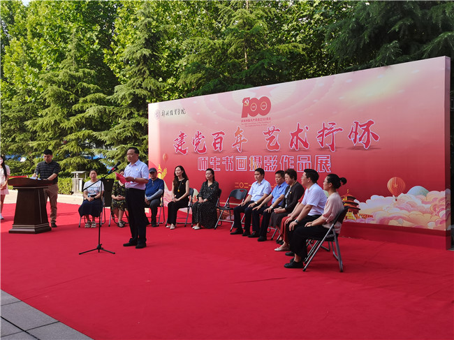 會上,藝術(shù)設(shè)計學(xué)院院長牛玖榮介紹活動籌辦、作品評審與展出情況,介紹書畫攝影展的目的旨在為廣大師生提供充分展示藝術(shù)才華的平臺,讓師生通過大賽吸取藝術(shù)養(yǎng)分,培養(yǎng)師生感受美、鑒賞美和創(chuàng)作美的能力,共同為學(xué)校轉(zhuǎn)型發(fā)展貢獻力量,為黨的生日祝福與禮贊。