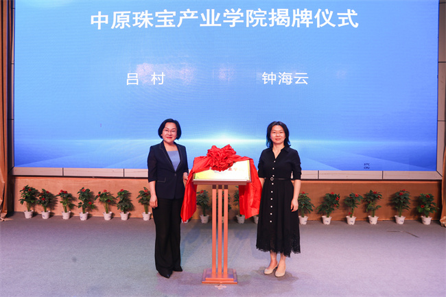 鄭州職業(yè)技術(shù)學(xué)院黨委書(shū)記呂村與鄭州市教育局高教處處長(zhǎng)鐘海云為中原珠寶產(chǎn)業(yè)學(xué)院揭牌