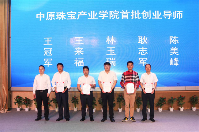 河南省中原珠寶創(chuàng)新研究院院長(zhǎng)張杰為首批創(chuàng)業(yè)導(dǎo)師頒發(fā)聘書(shū)