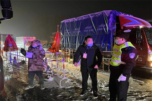 耐心勸返人員、閉環(huán)轉(zhuǎn)運(yùn)返鄉(xiāng)人員、查驗(yàn)過(guò)往車輛雙碼、48小時(shí)內(nèi)核酸陰性證明及過(guò)往貨運(yùn)車輛通行證……310交通服務(wù)站全體人員沒(méi)有因?yàn)樘鞖夂涠?jiǎn)化檢查程序,對(duì)疫情防控點(diǎn)嚴(yán)格管控,認(rèn)真檢查每一輛過(guò)往車輛,不放過(guò)一絲隱患。他們站在黨旗下,用血肉之軀堅(jiān)守在大雪寒天的戰(zhàn)“疫”戰(zhàn)場(chǎng)上。