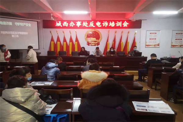 中新河南網(wǎng)3月18日電:3月17日上午,開封市城鄉(xiāng)一體化示范區(qū)城西辦事處召開反詐培訓(xùn)會(huì),示范區(qū)公安分局指揮中心民警、一中心四平臺(tái)網(wǎng)格員及10個(gè)社區(qū)綜治專干參加,區(qū)政法委宣傳科科長(zhǎng)徐佳玉、辦事處食藥監(jiān)所所長(zhǎng)王磊出席。