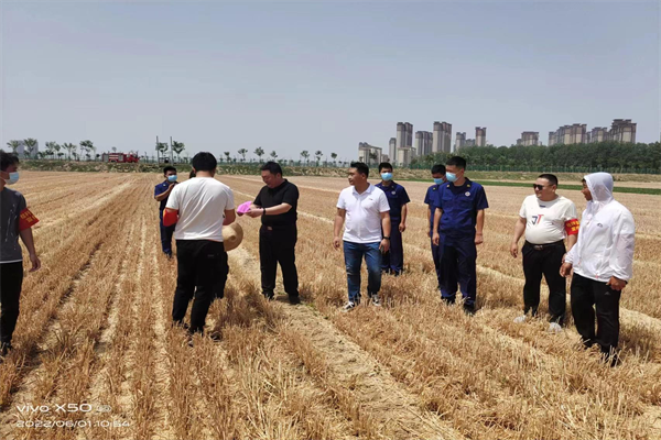 孫寧場(chǎng)長(zhǎng)及各站所深入到田間地頭以及收割小麥現(xiàn)場(chǎng),與小麥?zhǔn)崭钊藛T進(jìn)行了親切交談,了解小麥?zhǔn)崭钸M(jìn)度及小麥產(chǎn)量,并向其宣傳“三夏”生產(chǎn)及秸稈禁燒注意事項(xiàng),叮囑注意防暑降溫,保障身體健康。