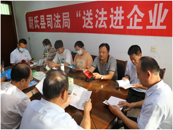 尉氏縣司法局:8月23日,聯(lián)合尉氏縣公證處、河南循規(guī)律師事務(wù)所組成法律服務(wù)隊,先后到尉氏縣思佳塑業(yè)有限公司、河南省康源香料廠有限公司開展“送法進(jìn)企業(yè)”活動。法律服務(wù)隊的隊員們與企業(yè)負(fù)責(zé)人深入交流,為他們詳細(xì)介紹了司法局的職能、法治惠企相關(guān)政策以及公益法治體檢、公證綠色通道等具體服務(wù)措施,解答了協(xié)議簽訂、勞務(wù)合同履行等方面的法律問題,并為企業(yè)贈送了《民法典》《法律援助法》《防范和處置非法集資條例》等法律知識讀本。(邵丹)