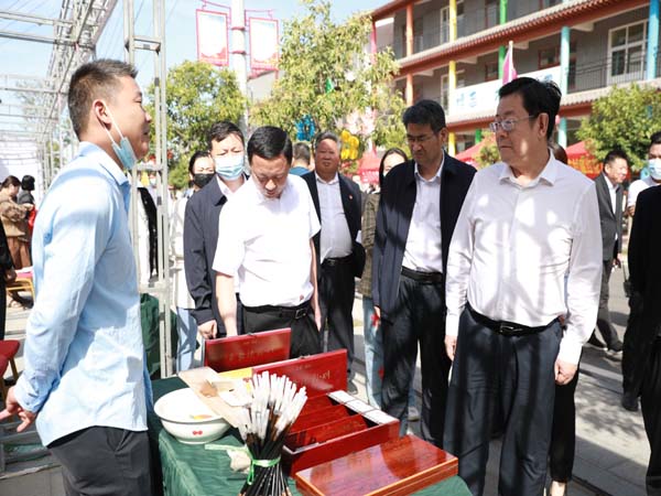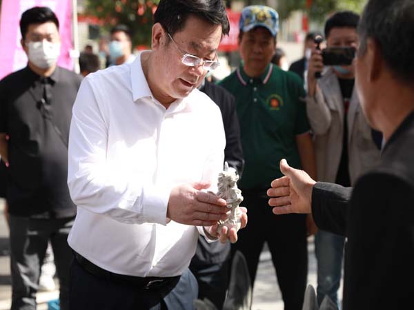 “農(nóng)夫集市”展示區(qū), 幾十家名特優(yōu)新農(nóng)產(chǎn)品在這里亮相。有蜜瓜,紅薯,花生,梨和葡萄,還有花生奶,黃豆醬,藏紅花等琳瑯滿目的農(nóng)產(chǎn)品,受到“逛節(jié)”人們的歡迎,紛紛品嘗購買。豐收節(jié)不僅有現(xiàn)場展銷,還借助新媒體,現(xiàn)場直播帶貨,利用“網(wǎng)紅人物”“流量平臺”,創(chuàng)新線上線下多種形式,讓優(yōu)質(zhì)農(nóng)產(chǎn)品被更多商家知曉,推動品牌農(nóng)產(chǎn)品與城鄉(xiāng)市場對接,帶動鄉(xiāng)村產(chǎn)業(yè)發(fā)展、增加農(nóng)民經(jīng)濟(jì)收入,進(jìn)而實現(xiàn)鄉(xiāng)村振興。