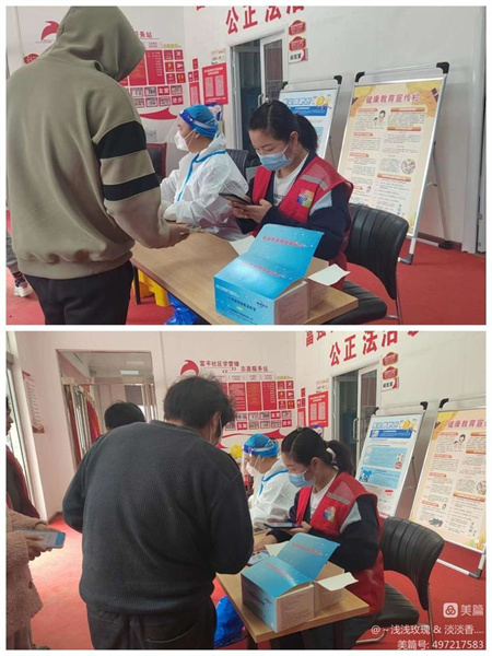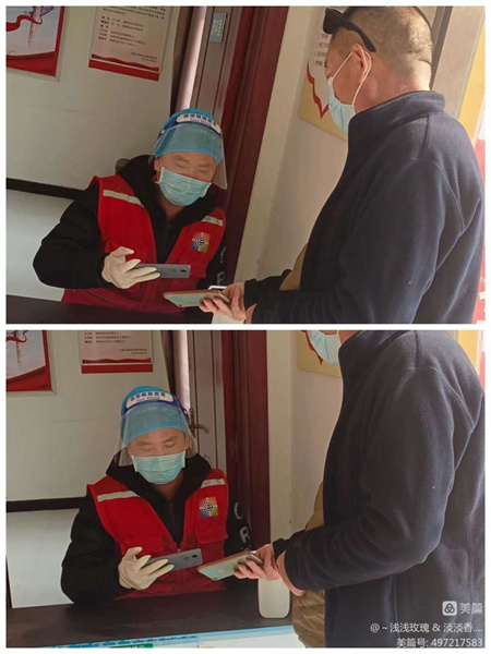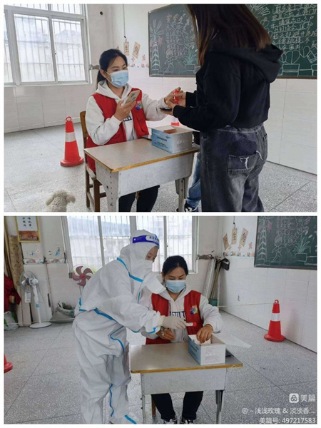 雙河鋪社區(qū)網(wǎng)格員協(xié)助社區(qū)及醫(yī)護(hù)人員開展全民核酸,維持秩序,協(xié)助掃核酸碼。